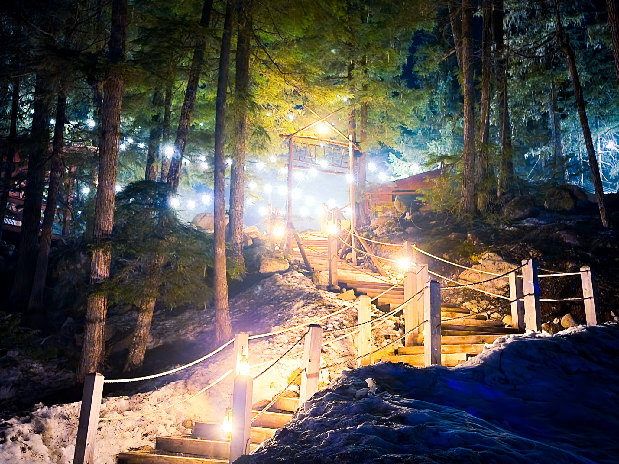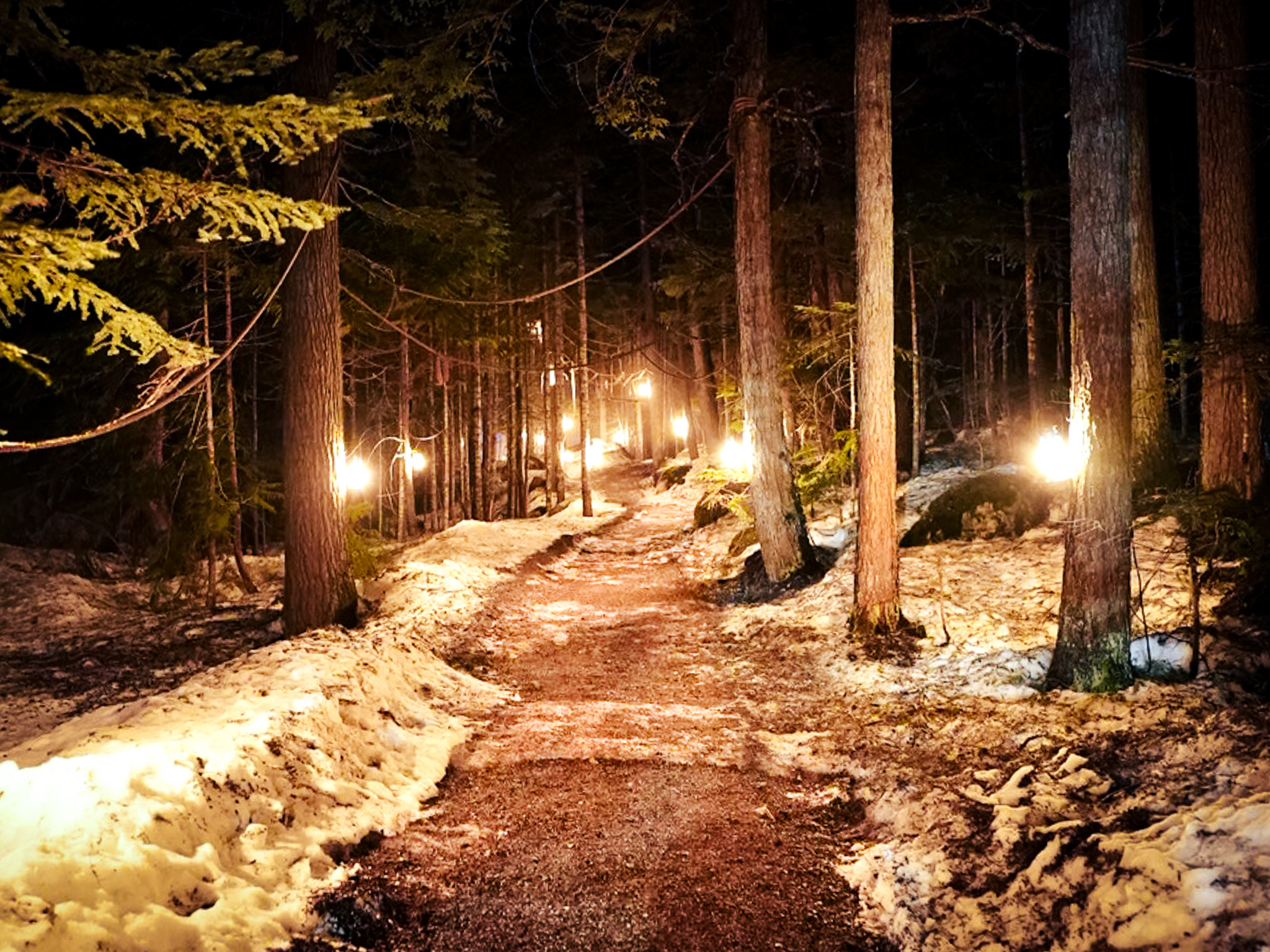 Vallea Lumina in Whistler is an immersive nighttime forest experience that blends lights, projections, music, and storytelling into a magical walk through the Coast Mountains. Guests follow a 1.5 km trail through old-growth forest while uncovering clues and legends about a mysterious hidden valley, turning a simple hike into a cinematic outdoor adventure.
